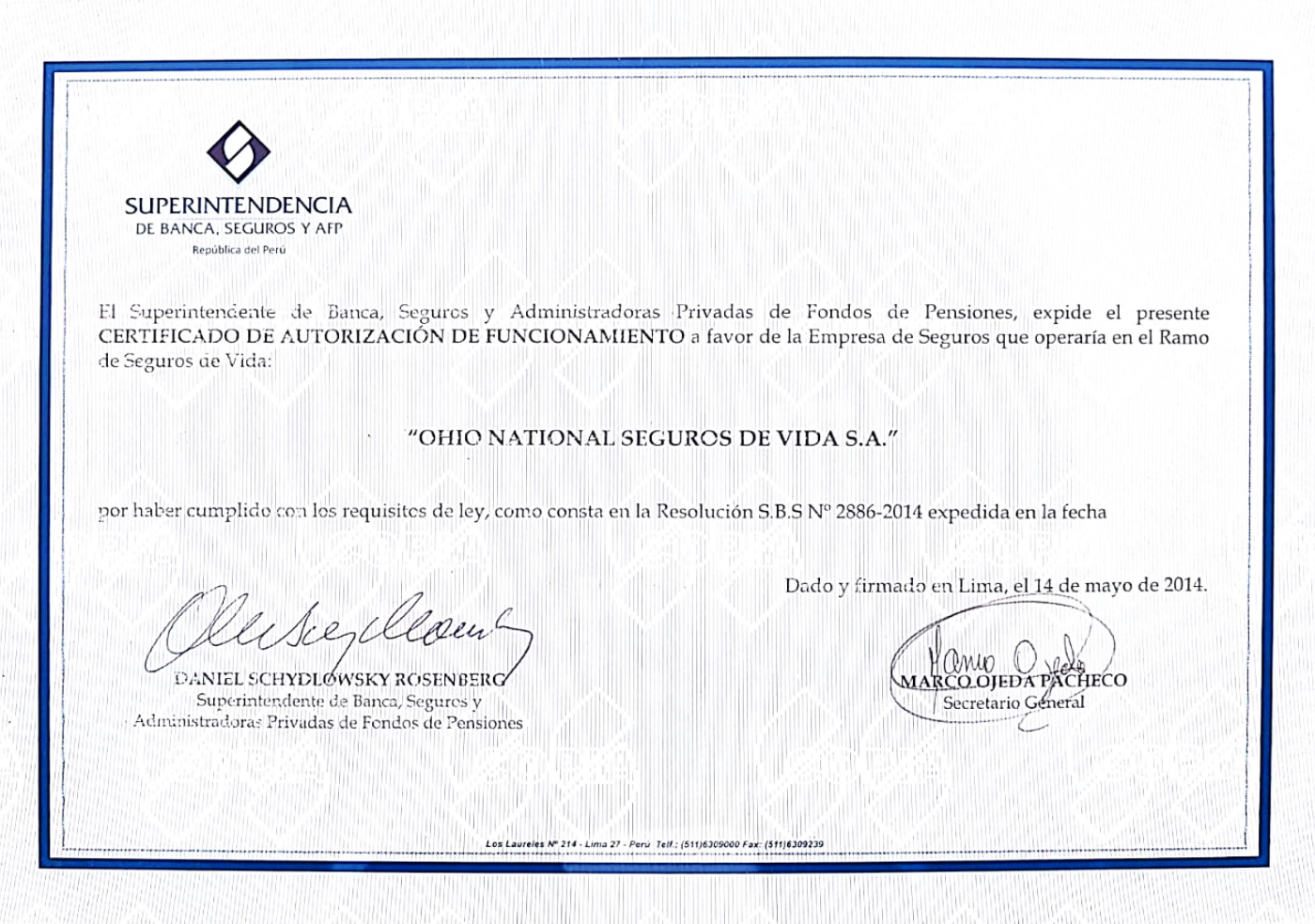 Revisa nuestro Certificado de Autorización de Funcionamiento, otorgado el 14 de mayo de 2014 por la Superintendencia de Banca, Seguros y AFP, dando clic en el siguiente ENLACE, , así como su actualización en mérito de la aprobación del cambio de su denominación social, dando click en el siguiente ENLACE.